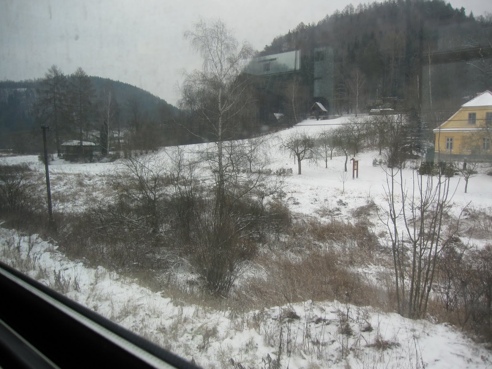 Update: We were stopped for 3.5 hours before resuming the journey! My view from the window is shown in the photo. This long stop was certainly not typical of the Czech train system, which is usually very reliable. In the end, I was given a candy bar to eat, and a Kc100 voucher for future use on the train.