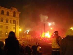 Apparently Prague was well prepared for the partyers from all over Europe. A and N watched a fireworks show on the river and then converged with thousands to Wenceslas Square. There was music everywhere, fireworks tossed indiscriminately, impromptu stands selling champagne bottles, drugs peddled openly, etc. The crowds included tourists from all over. The whole city centre was shrouded in smoke. They saw fire fighters on every corner but not so many police. There was a casualty tent with cots and paramedics at the ready. All in all, all festive occasion.