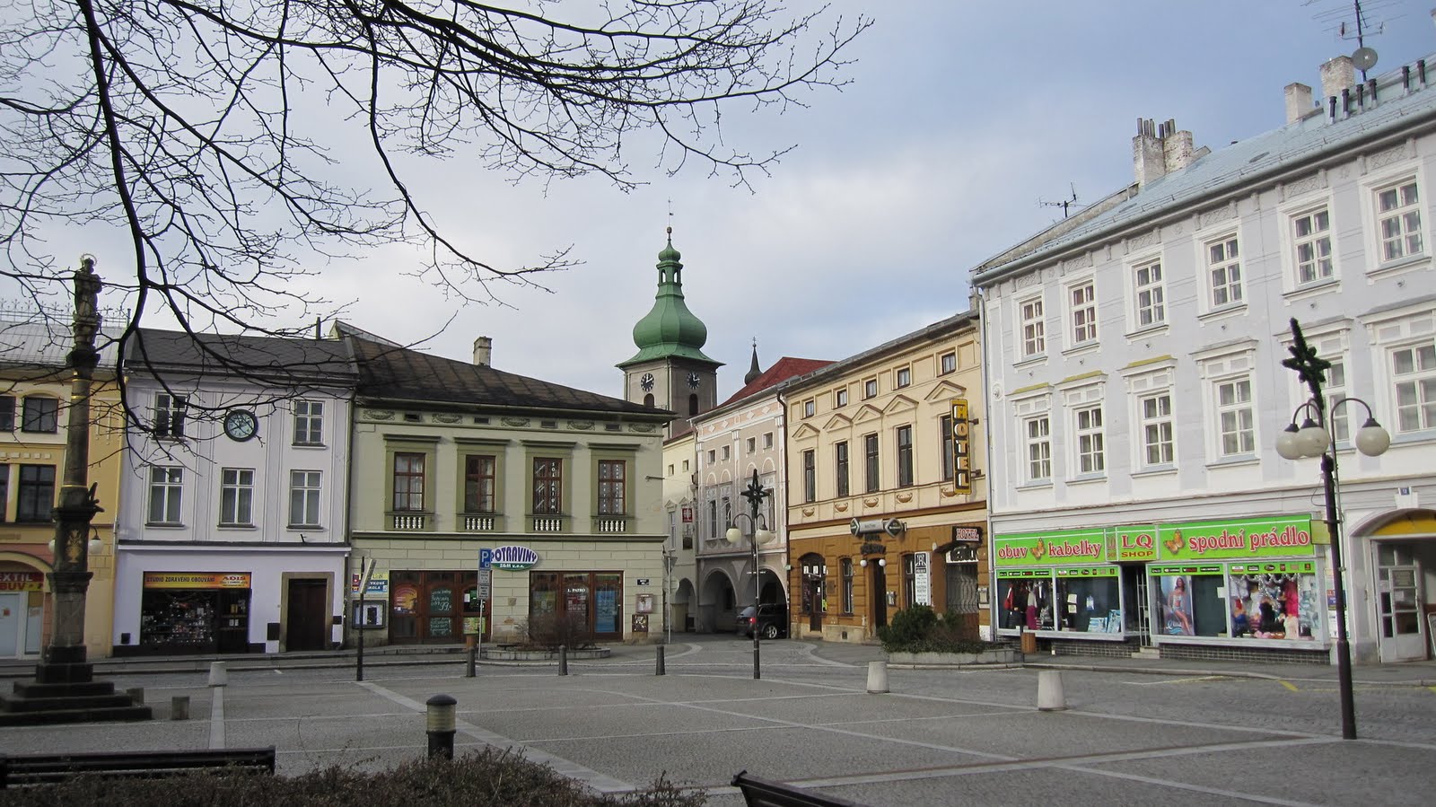 On the 31st, J and I wandered down to the town square before midnight. The photo below shows the square just before the masses arrived. All ages were there but drunken teenagers predominated. Fireworks were everywhere and the square resembled a war zone filled with smoke while people popped champagne bottles and hugged and kissed their friends. Also showed is a daytime scene of the square.