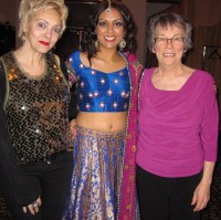 KB’s wardrobe extends to ANY occasion, so she pulled out a sequined number. My wardrobe tends to be a bit light in the glitter and glamour department but I think I presented myself well in a draped fuschia top.As you can see from the photo, we were nevertheless somewhat outshined by R, who recently flew to India to outfit herself for the week of festivities. All except the Jimmy Choo’s, which were bought in Seattle.