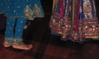 Made our way to the BRIDE’S ROOM. Inside there was a gaggle of women in bright colours, and an extremely composed and dignified bride. I have to say that the photo does not do justice to the bride or the dress. R looked quite stunning, although she remained seated and so dignified that I suspect she actually couldn’t move because of the weight of gold jewelry, metallic jewel-encrusted fabric, bangles and dangling gold things, heavy eyelashes, and layers of embroidered silk.