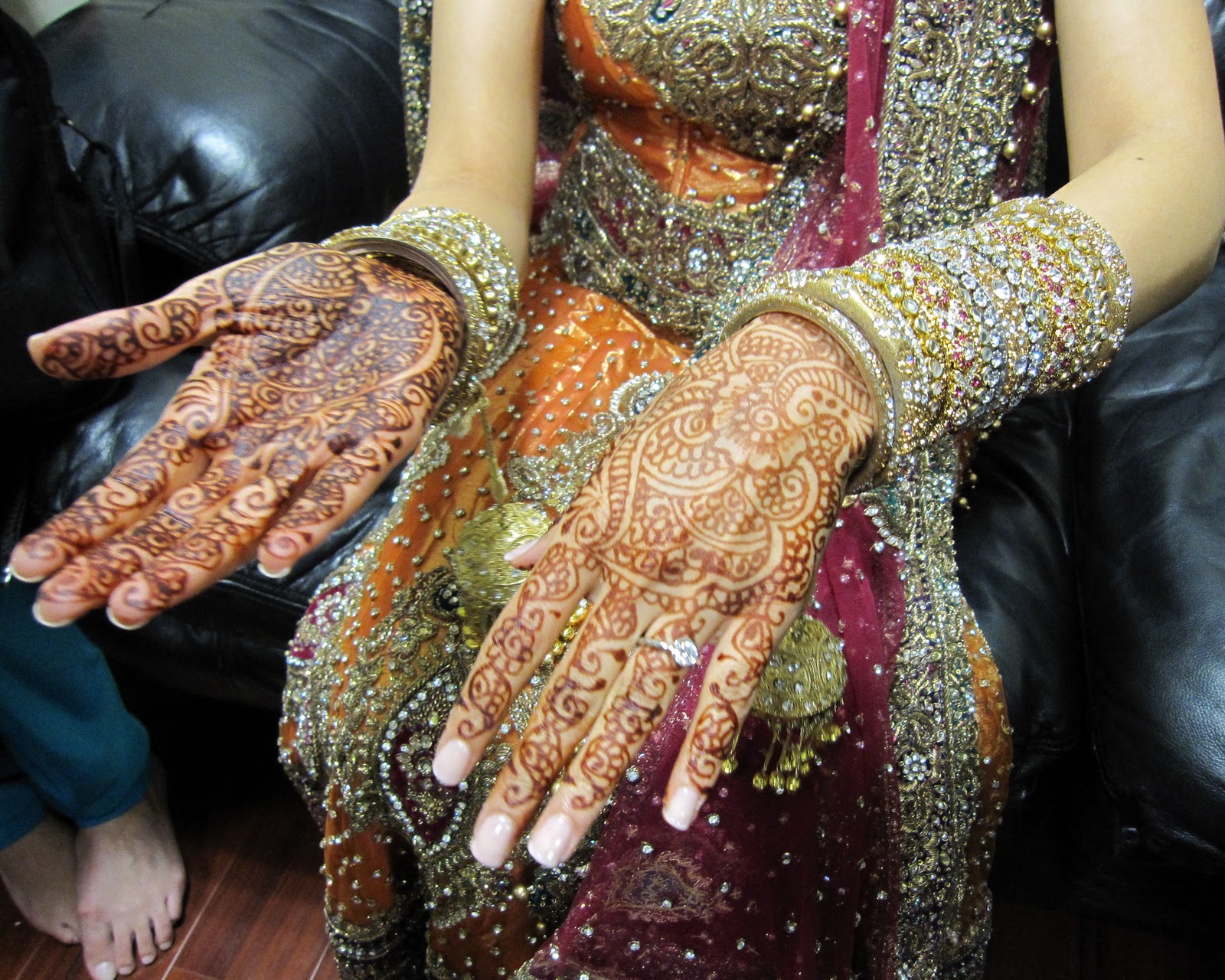 Made our way to the BRIDE’S ROOM. Inside there was a gaggle of women in bright colours, and an extremely composed and dignified bride. I have to say that the photo does not do justice to the bride or the dress. R looked quite stunning, although she remained seated and so dignified that I suspect she actually couldn’t move because of the weight of gold jewelry, metallic jewel-encrusted fabric, bangles and dangling gold things, heavy eyelashes, and layers of embroidered silk.