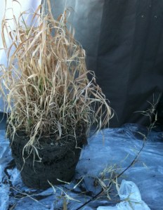 Patio gardening is hard work – hefting pots of various sizes and bags of soil, bending down, getting up, dragging heavy pots, spreading a plastic sheet so that scattered soil didn’t get between and under the concrete slabs of the deck. Then clean-up – taking away the rejected soil, dead plants, dirty pots not in use, dirty plastic sheets, etc. In my backyard I can toss things under a bush at the back until another day. But on an urban 9th floor balcony, one doesn’t have that option.