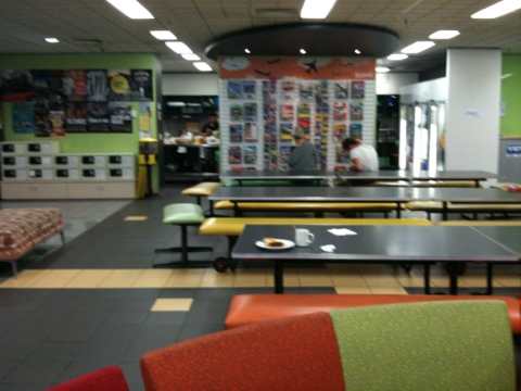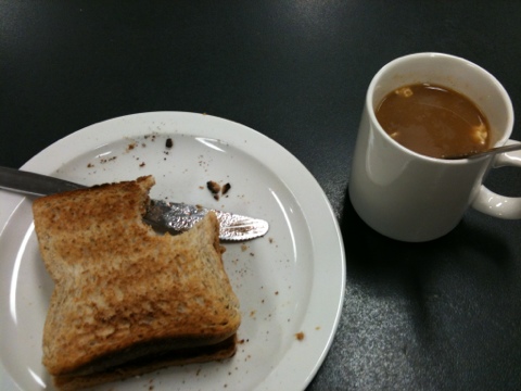 I am staying in the Greenhouse Backpackers hostel in Melbourne. The location is ideal and the hostel is quite satisfactory. At $70 for a private room it is half the price of a budget hotel. I use the communal bath (locker room/ dormitory style) but have my own room, with wifi. The kitchen and dining area, shown, offers free breakfast – I just finished 2 peanut butter and jam sandwiches with coffee (instant, with powdered whitener).
