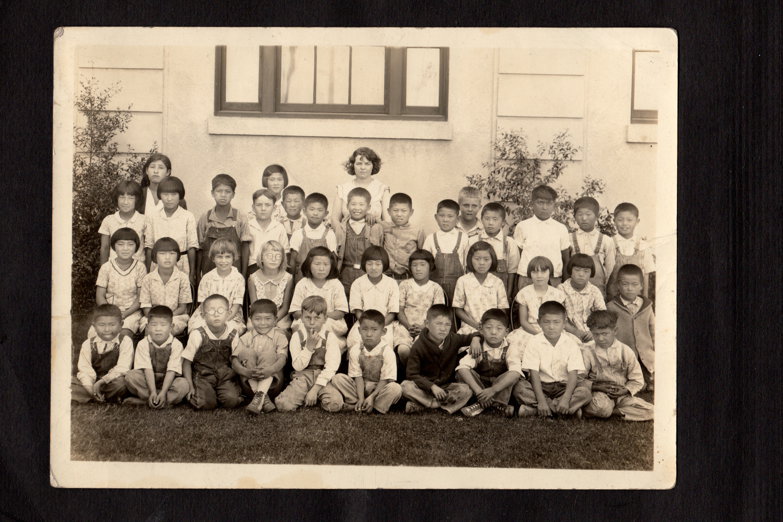 Here’s a photo of Mom’s Grade 3 class at McKinley School in Gardena (Compton) California. Mom is seated, third from the left. Her classmates were mostly children of Japanese and Mexican farm workers.