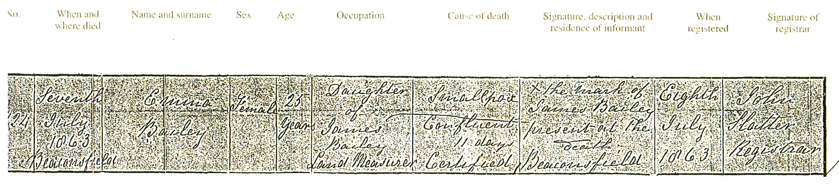 I’ve told you about poor Emma Bailey, my great great grandmother who had an illegitimate son (my great grandfather) in 1860 and then died in 1863. We never knew why she died at the age of 25 until my sister requested a copy of her death certificate, which arrived recently.