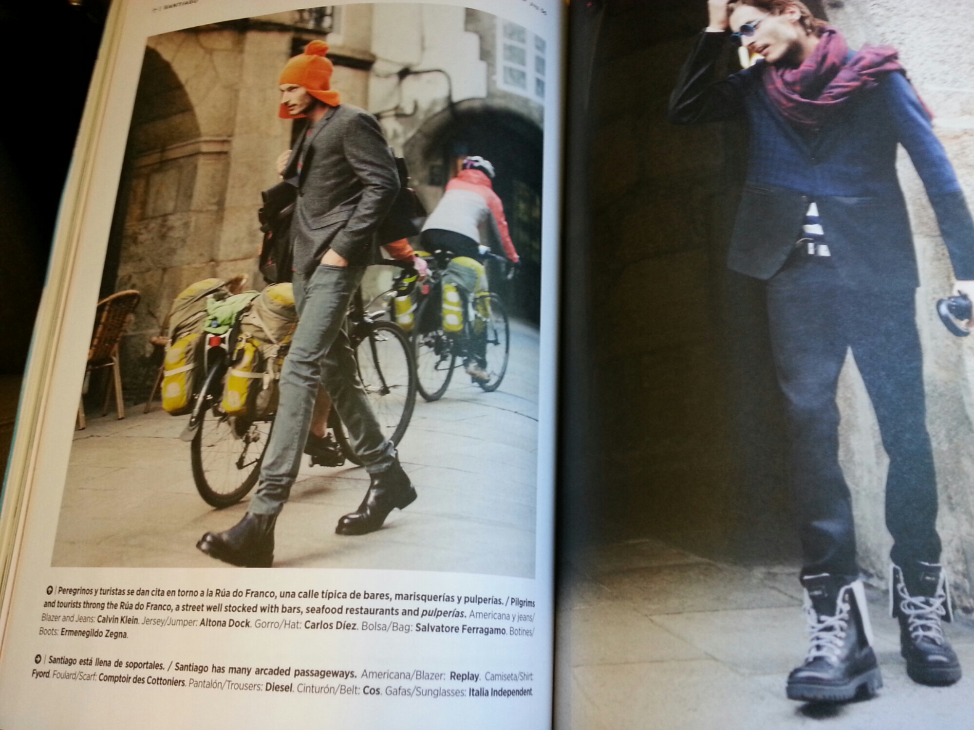 To change the topic, on my flight from Spain, the airline magazine had a couple of pages about Santiago and the latest fashions for pilgrims. Guess we’ll be seeing this soon in the albergues.