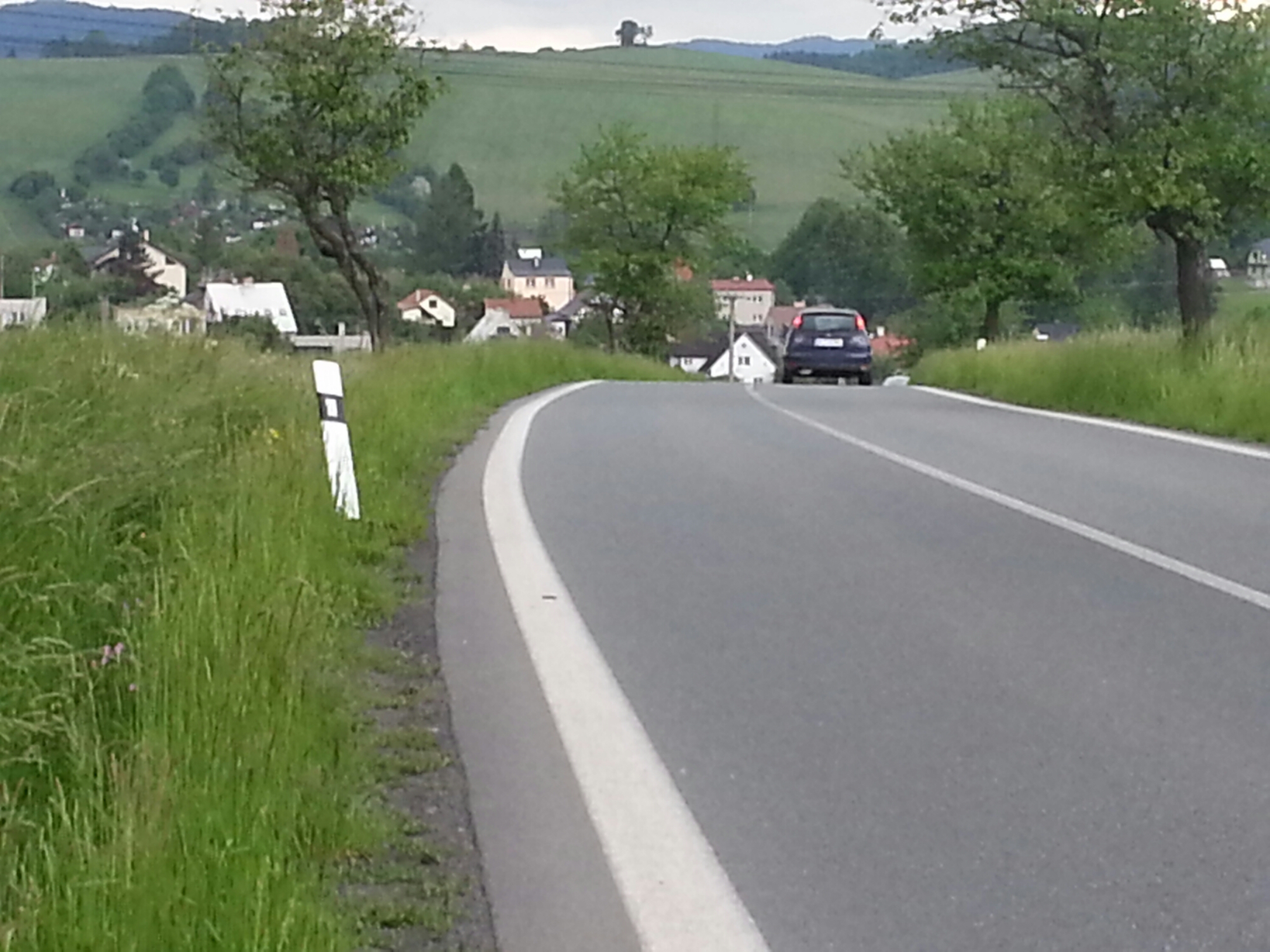 As always, getting out of town was the hard part and we got it wrong. For about 2 km we ended up walking on a narrow path between the ditch and the asphalt, with only a half-metre shoulder between us and the cars whizzing by.