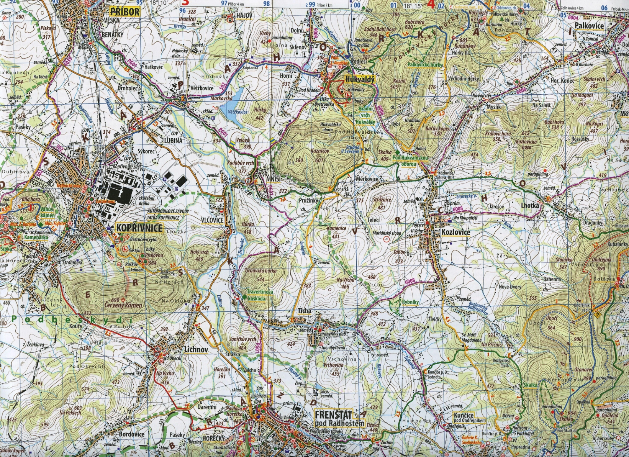 I had a 1:50,000 hiking map of the Moravskoslezské Beskydy, which translates to “Moravian-Silesian Beskyd Mountain Range.” It’s not easy to determine the best walking routes from the map but one can’t get TOO lost in this countryside, and N was responsible for asking directions in Czech.