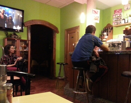 The bar is nice, with the owner family eating at the next table, and I’ve had a better-than-average pilgrim meal – I asked for salad instead of fries.