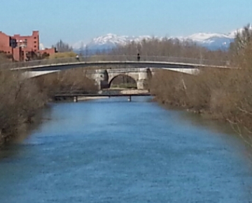 Off the bus and walking into the city, you can see mountains with snow on the top. That’s the direction we’ll be walking.