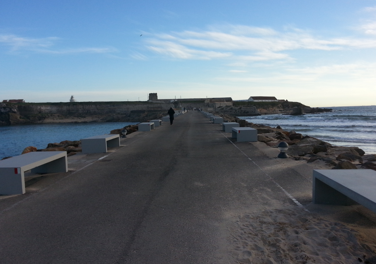 Tarifa has two main features – wind sports, and a ferry to Morocco. There is a decided surfer style to the town, mixed with tourists going to Morocco. An additional feature is that one can swim in the Atlantic on one side of this causeway, and cross the road to swim in the Mediterranean.
