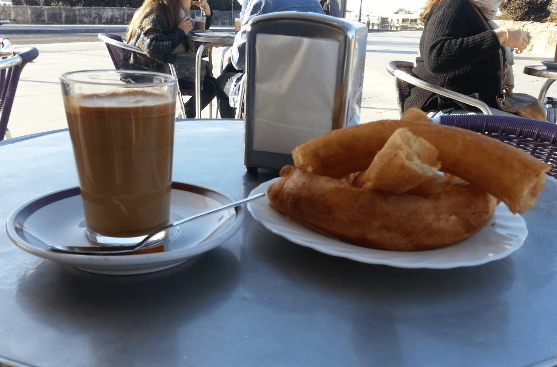 2017-03-20 00.54.57 Published March 19, 2017 at 1122 × 740 in Day 1. Seville – Guillena (26.6 km) ← Previous Next → Coffee and churros. I shared them with a beggar and gave him a Euro for coffee. Started my day feeling good.