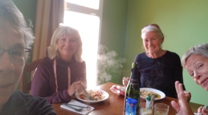 We registered at the police station and settled into the municipal albergue – a perfect place, except for the detail of no wifi. It was comfortable and spacious enough that we moved all the top bunk mattresses to the floor…