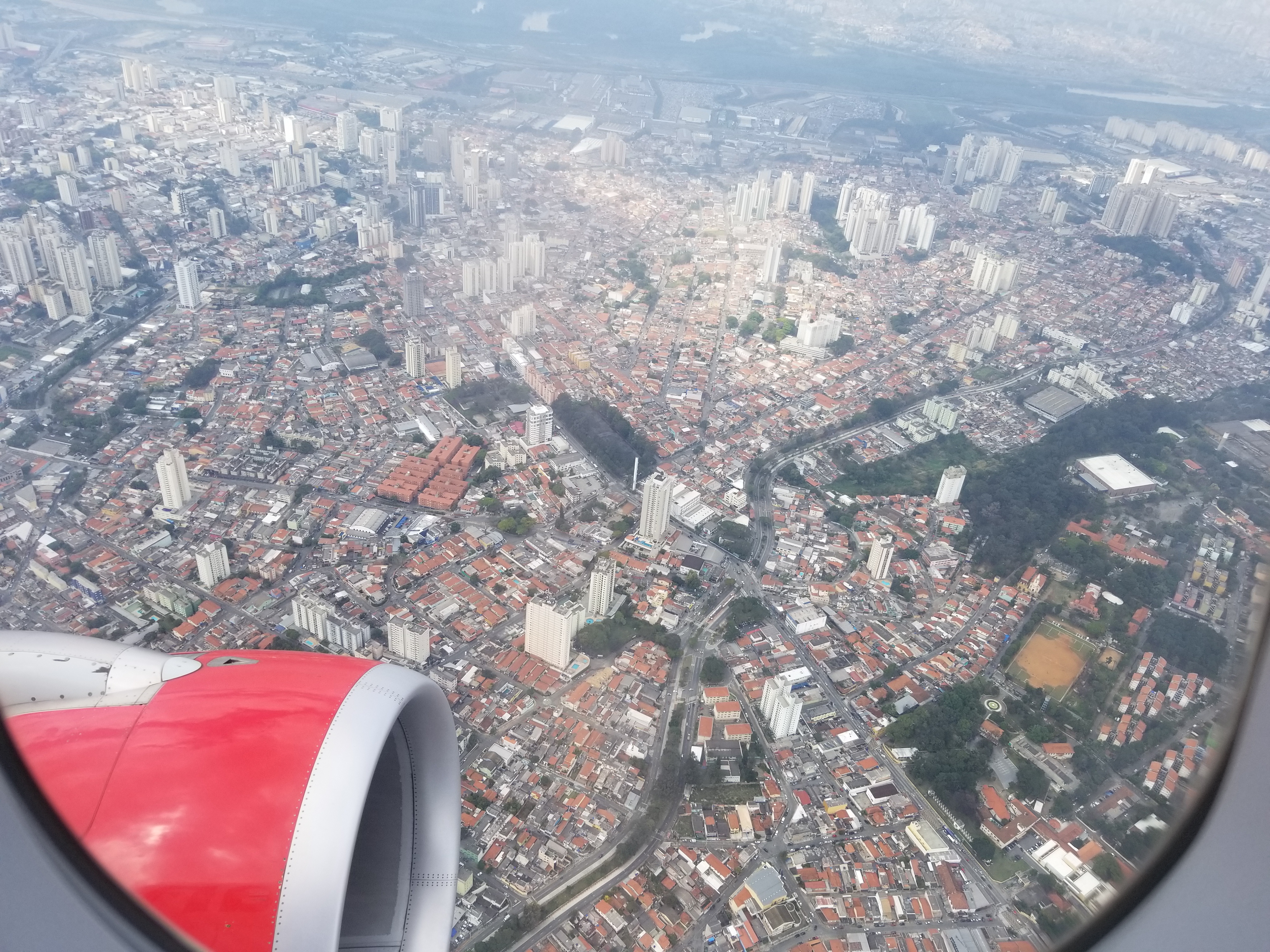 Turned out we did get dinner on the flight after all, so we arrived well-fed, if not well-rested. Here is a glimpse of Sao Paulo, which Wikipedia describes as an alpha megacity with 30 million people in the metropolitan area. It is the 11th largest city in the world. It is not on my bucket list.