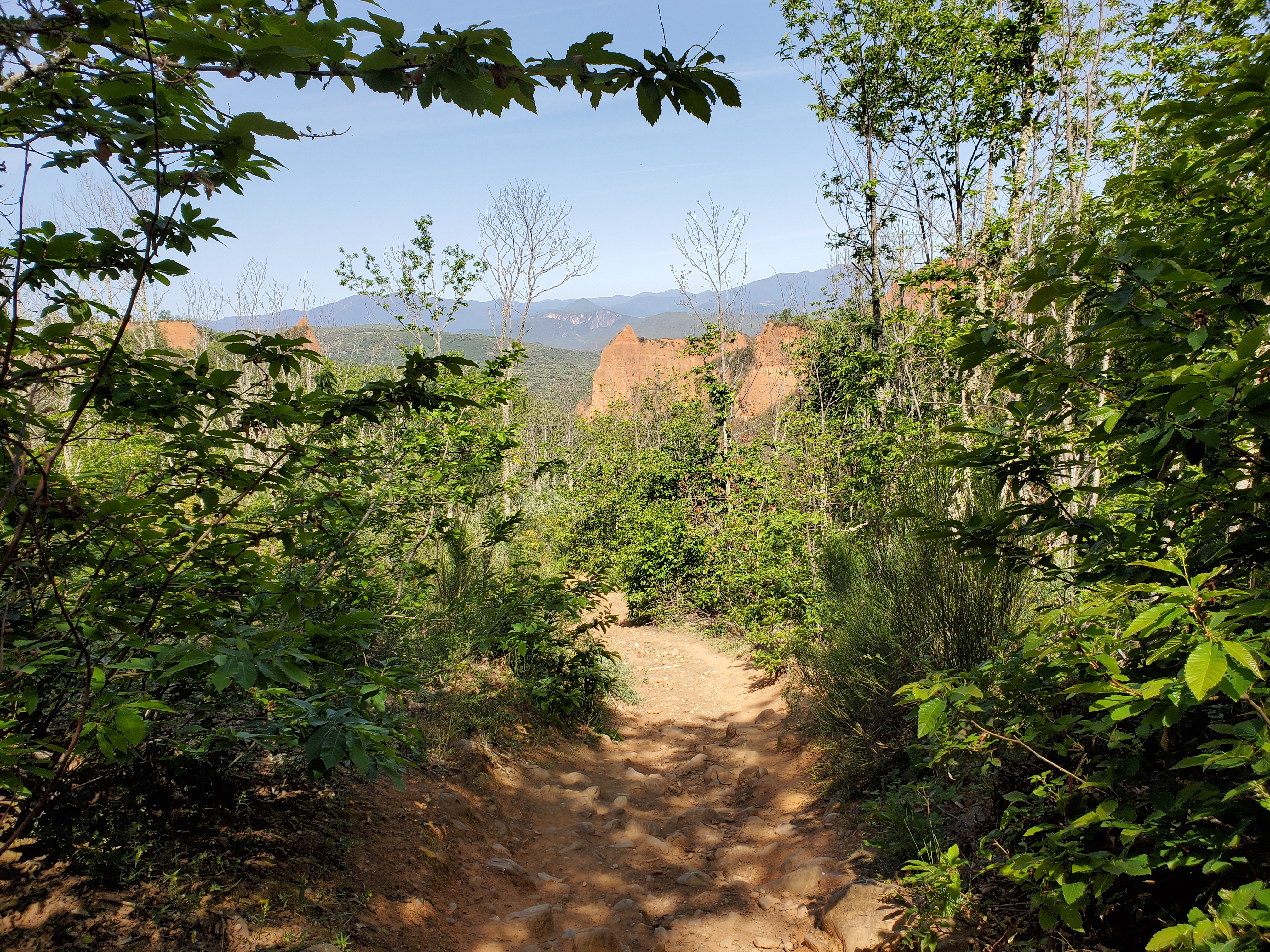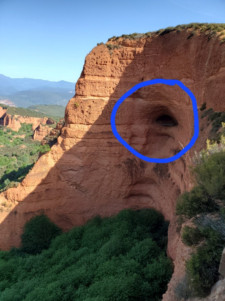 Today I am still on a non-Camino route but walking a tourist path between Orellán and Las Médulas. It was steep but pleasant up to the Mirador de Orellán. Very dramatic views of the hillsides that the Romans blasted away with clever hydraulics, to extract gold. See some photos and description further down the page.