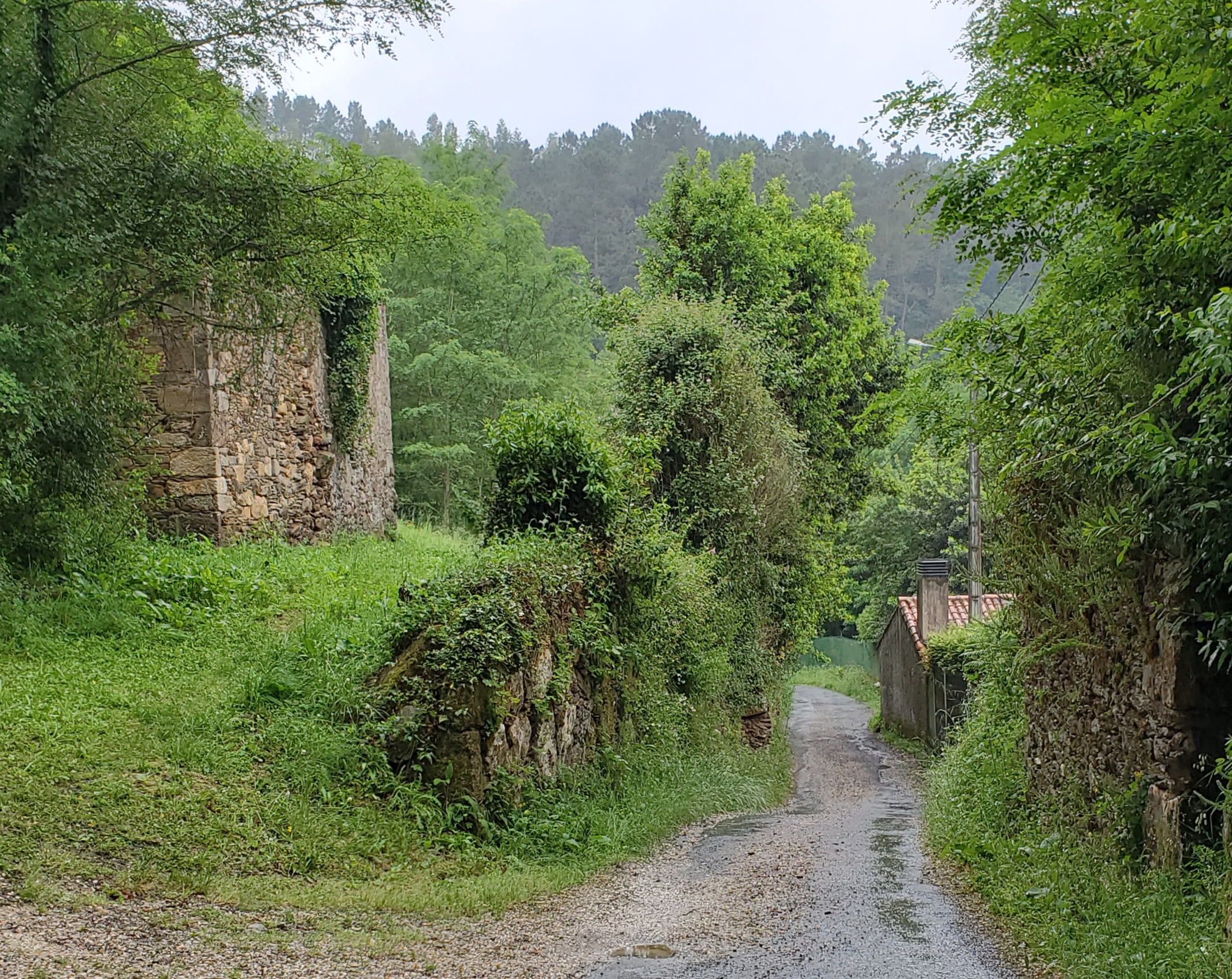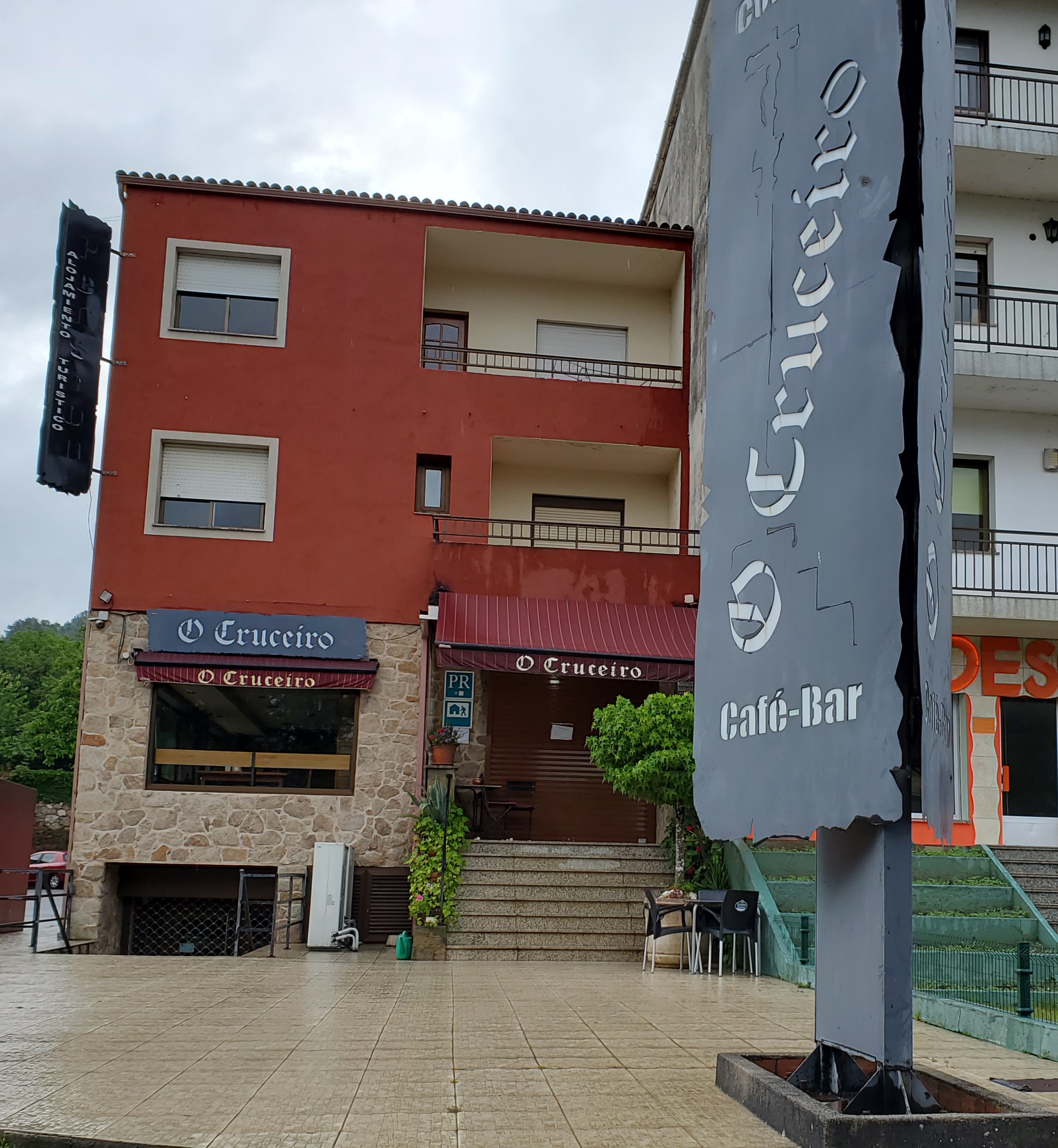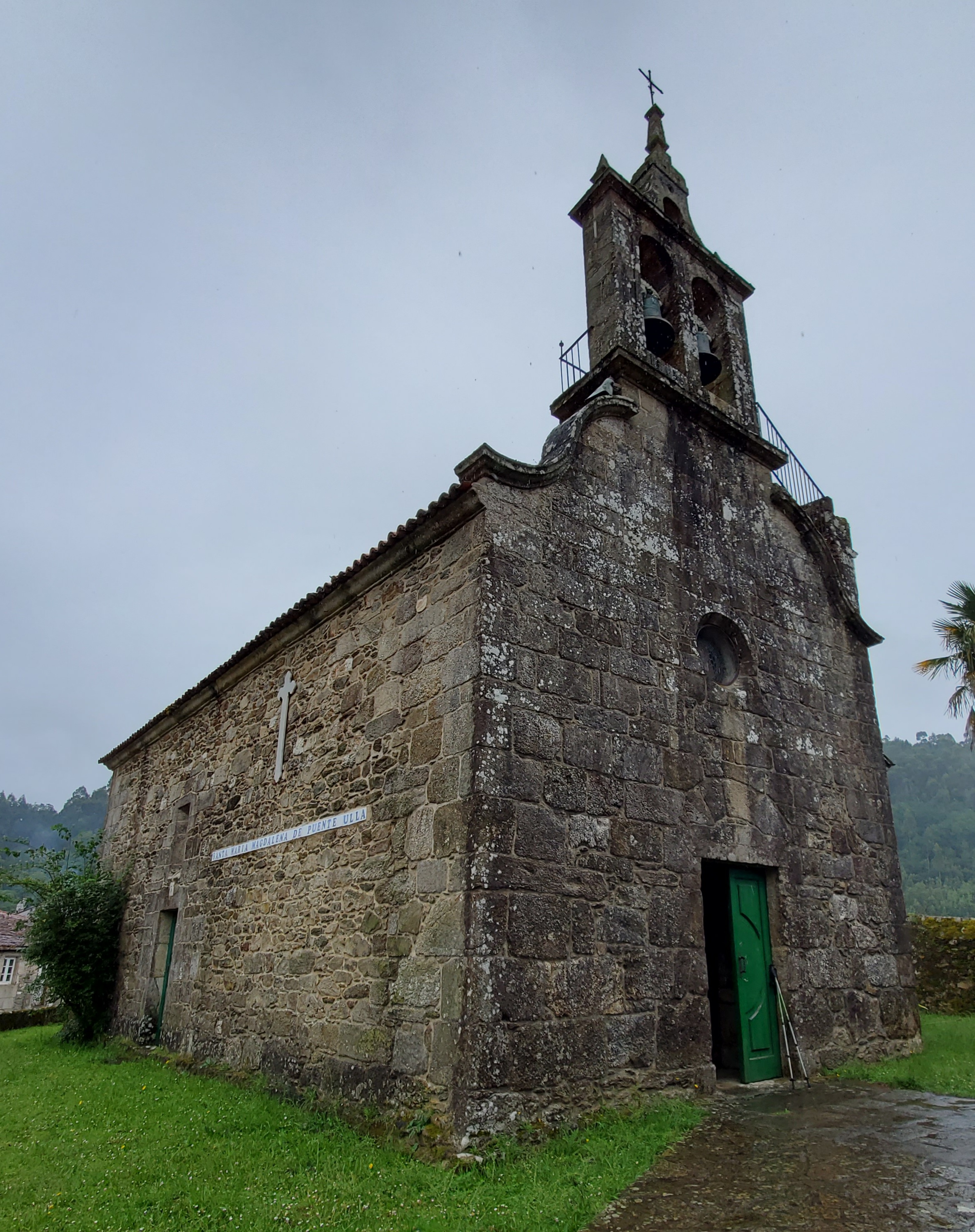 I walked into Ponte Ulla, where there was not much action. The bar/hostal right after the river was closed. The tourist info was closed. I was confused thinking that the Pensión A Taberna de Gundián was where I wanted to be, but there was no one there, either. Unusually, the church was open so I visited it to put in time, waiting for someone to appear. Finally I phoned Hostal/Restaurant O Cruceiro and was told that I had to go around the corner and up a hill. Which I did. My amigos were there, just finishing their dinners. Let’s just say that service was a bit slow. But I ate in the end so all was good.