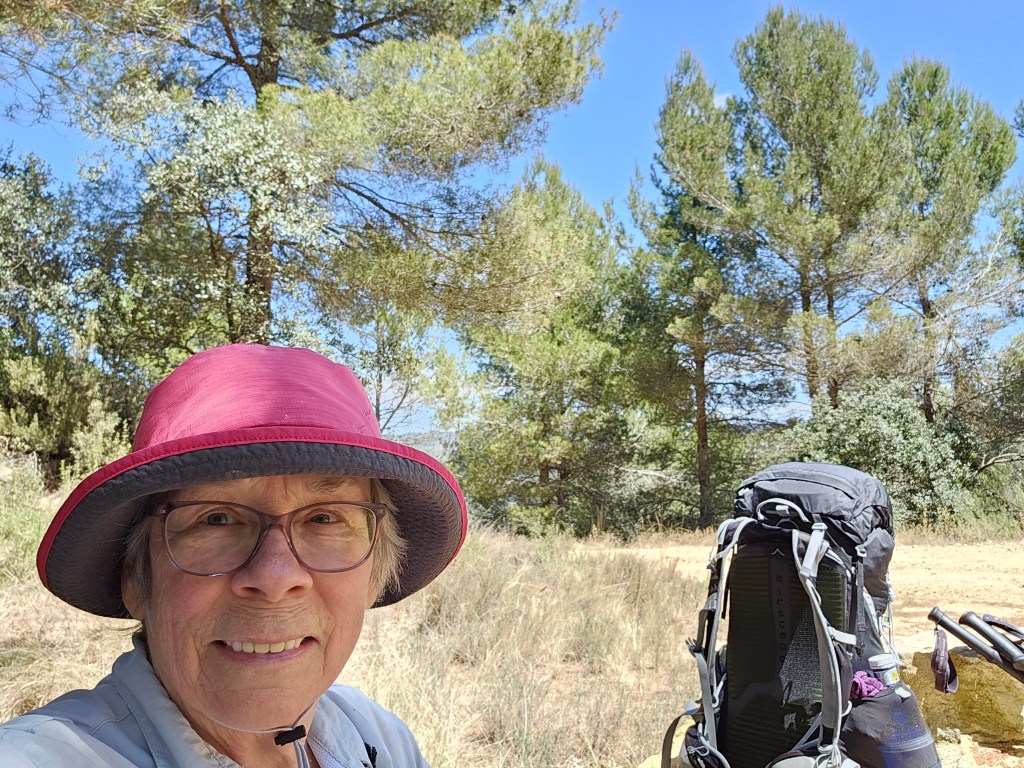 I got the hat on sale a couple of years ago. It was, unusually, a large size so I got it in spite of the colour. Now I quite like it! The weather has been good – warm but not too hot. Today was cooler and I wore my long-sleeved merino shirt and buff all day. Last night there was an impressive thunderstorm, but I was safely in my room to watch it.