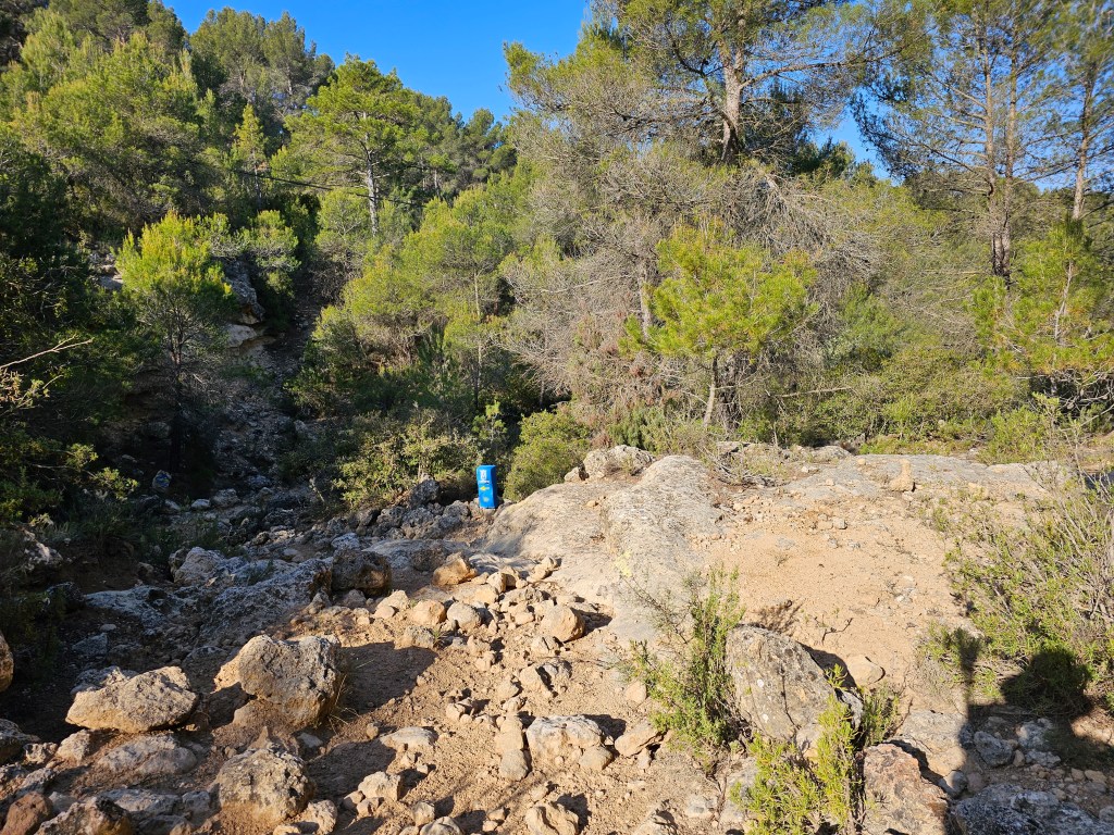 The first 23 km were varied terrain and interesting. There was some treacherous rocky descents and one stream crossing that involved getting one foot wet, so I took my time. Another area was obviously burned in a forest fire, perhaps last year.