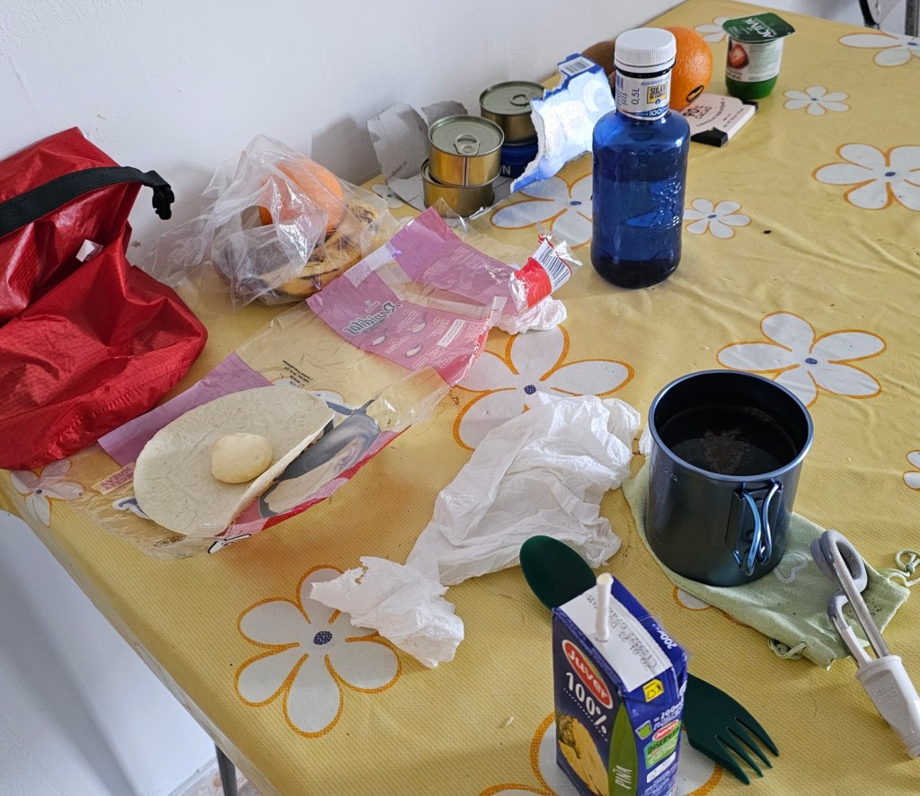 Day 24. San Esteban de Gormaz to Quintanarraya (33 km) Seeing Clarely / June 6, 2023 Okay. I am al.ost caught up with my blog, so this will just be some photos. Dinner in Quintanarraya: Cream of chicken soup – OK; canned tuna -awful; Baby Bel cheese on a wrap – delish. Yoghurt and dark chocolate for desert. Like Loading...