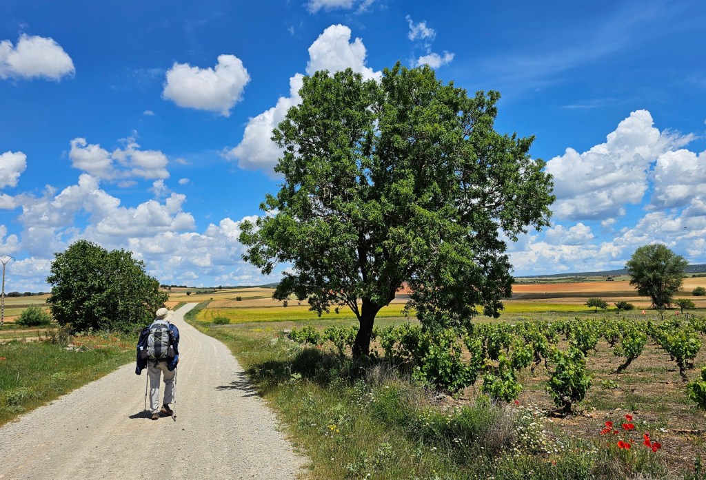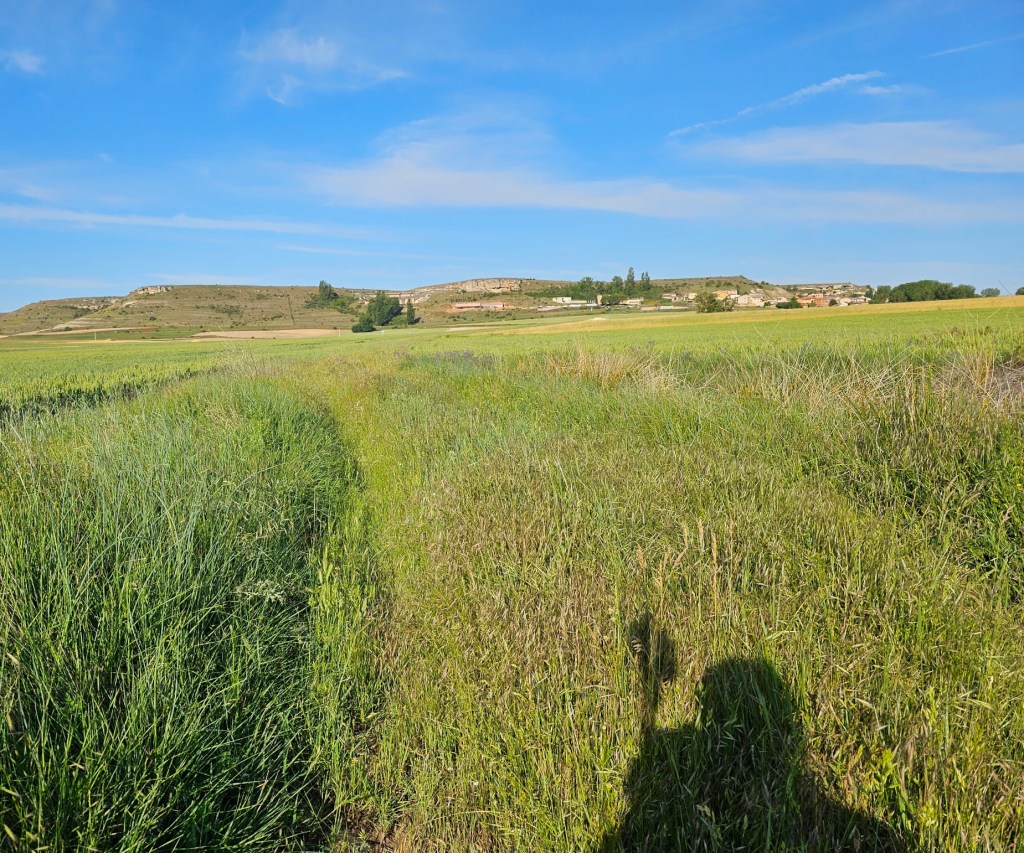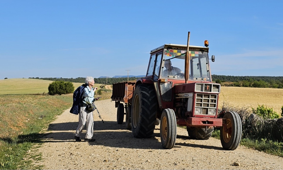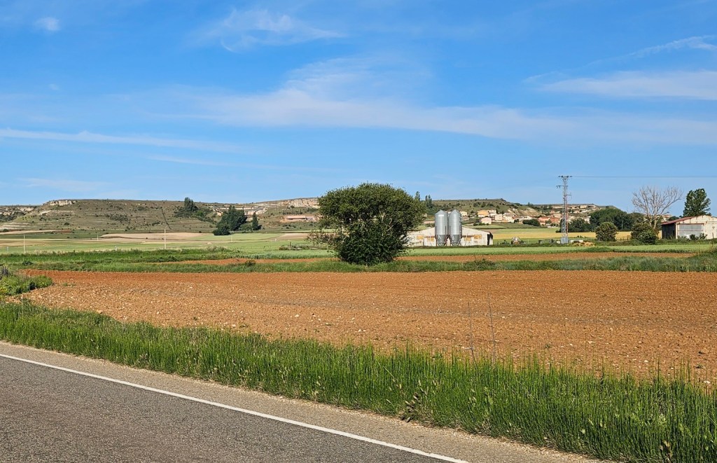 Finally it was time for the main task of the day, a mere 7 km to Huerta de Rey. We took an unmarked route on farm roads, that Google maps and Organic Maps suggested. Laurie first checked with the people who would know best – the farmers.