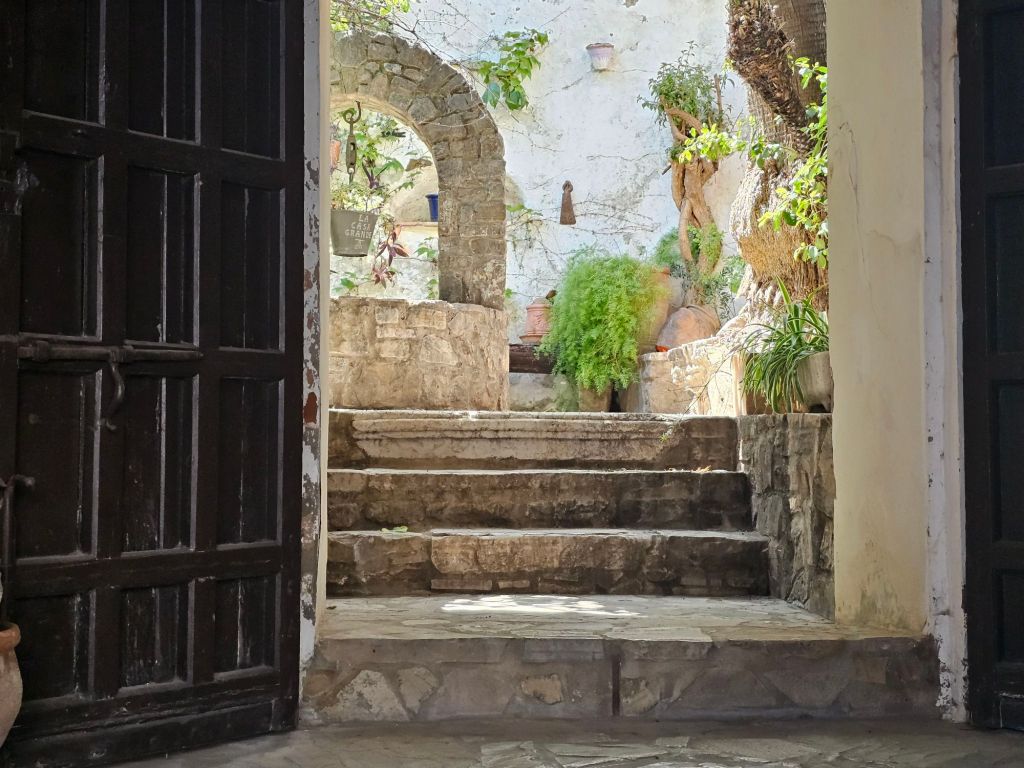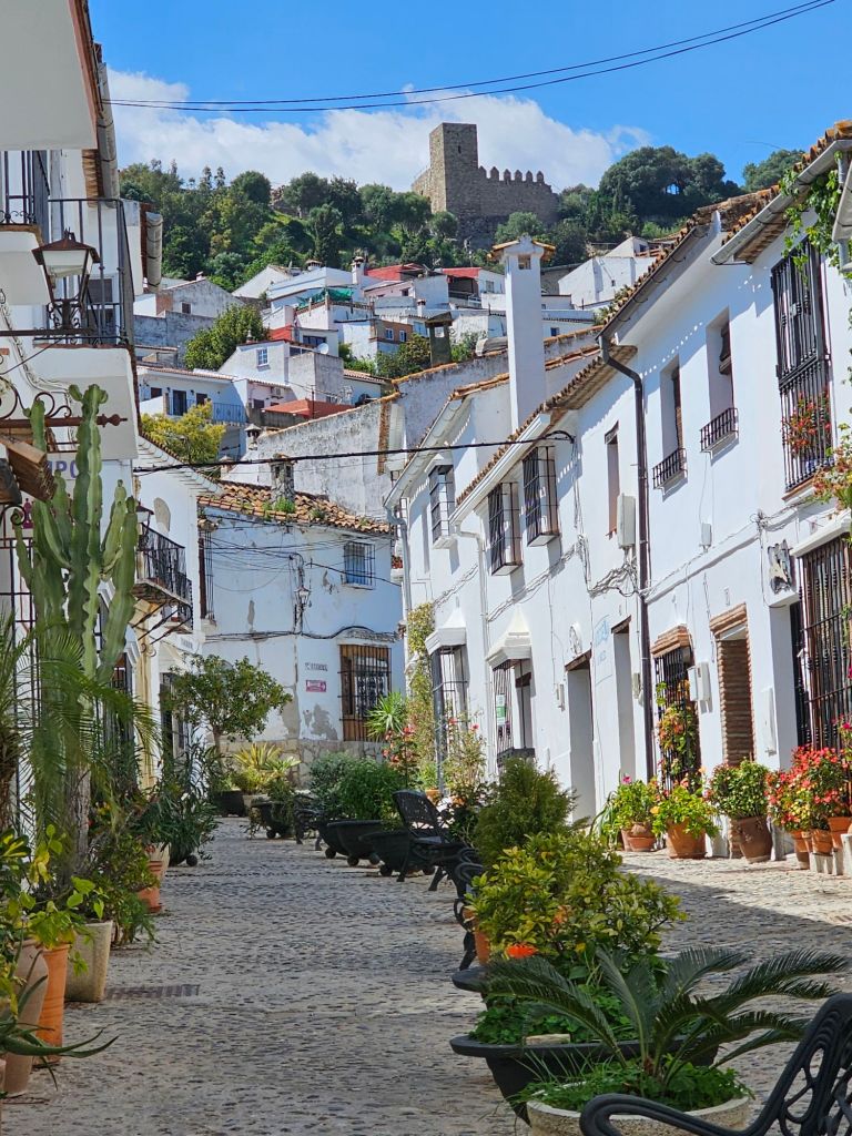 Entering Jimena de la Frontera, I could see I was only a km or so from my destination. But this is one of those scenic Andalucian white pueblos perched on a hill. Posada La Casa Grande is, of course, up near the top! That walk up through the town, laden with a pack and some extra groceries, was tough, but the Posada had the classic cool Andalucian courtyard to welcome me.